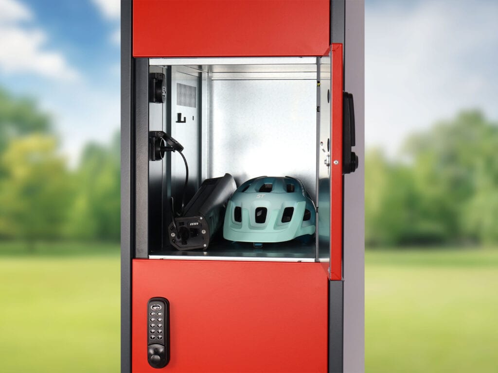 Die Ladeschränke sind mit robusten Schliess-systemen ausgestattet und trotzen Wind, Wetter und Zugriff durch Unbefugte.